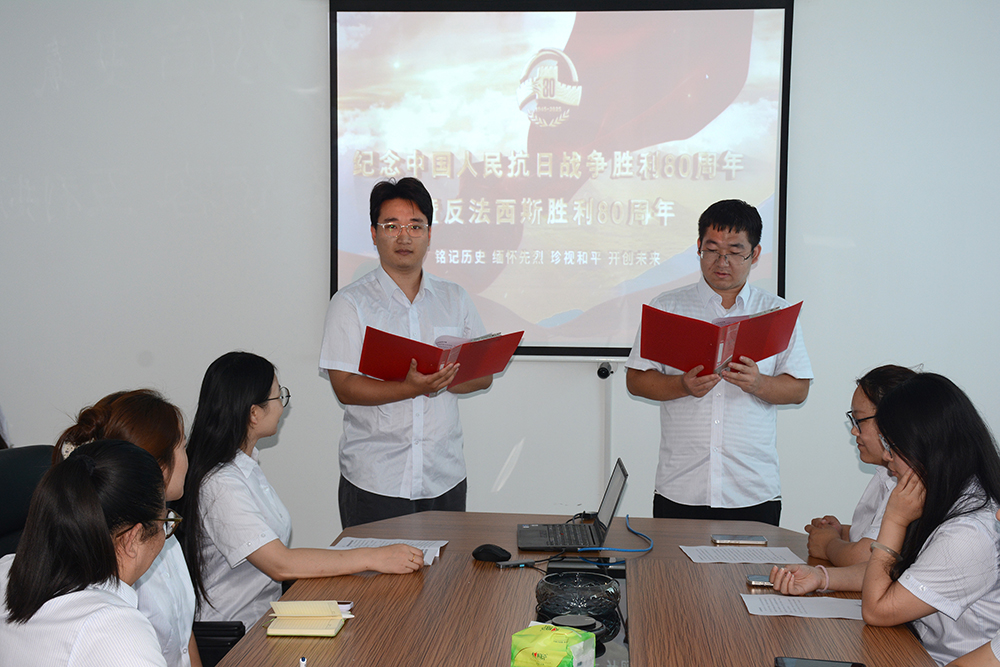 铭记历史,勿忘国耻。下午两点整,团员青年们齐聚会议室,开展了“抗战故事分享会”。各分公司分别选拔出优秀选手,每人搜集一篇抗战故事,声情并茂地演讲分享,以铿锵之声致敬先烈,以青春视角诠释时代担当。